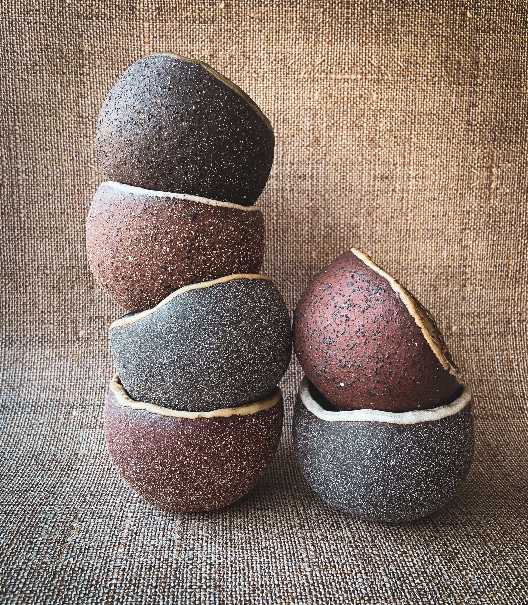 Denumirea de Pebb vine de la pebble care semnifică pietricele sau cristale de stâncă. Piatra este simbolul stabilității, al forței, al eternității. Toate acestea se simt tactil la fiecare cană din această colecție aducând această conexiune a naturii cu omul care folosește cana