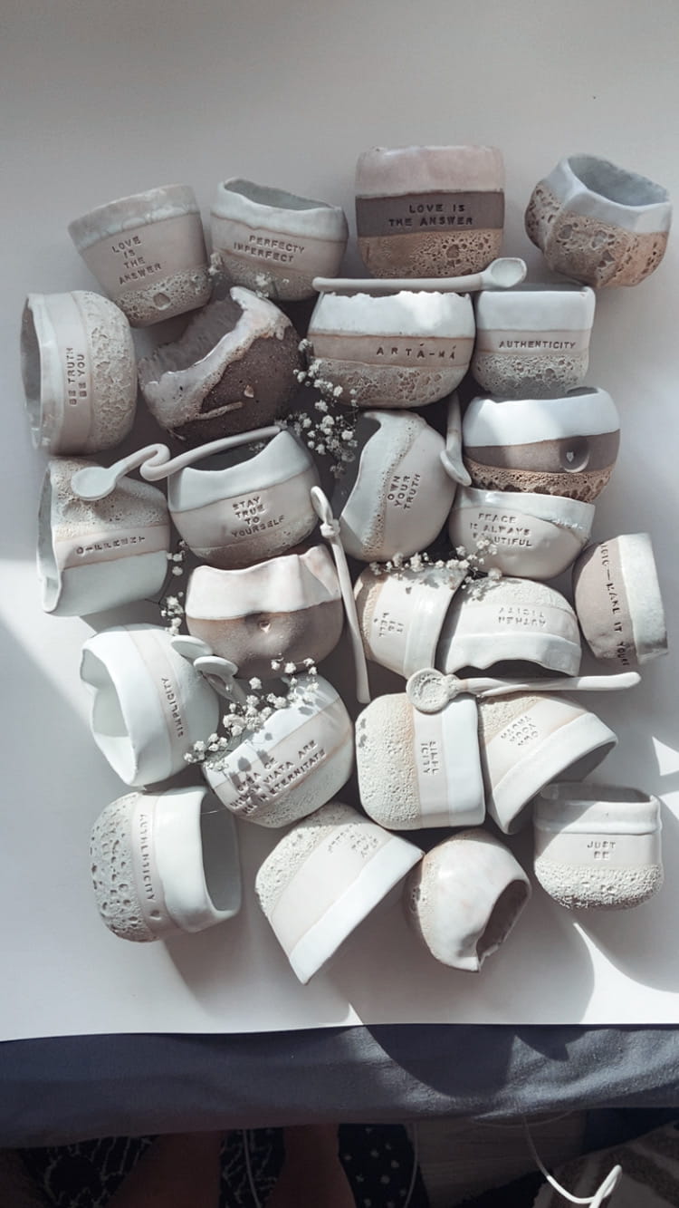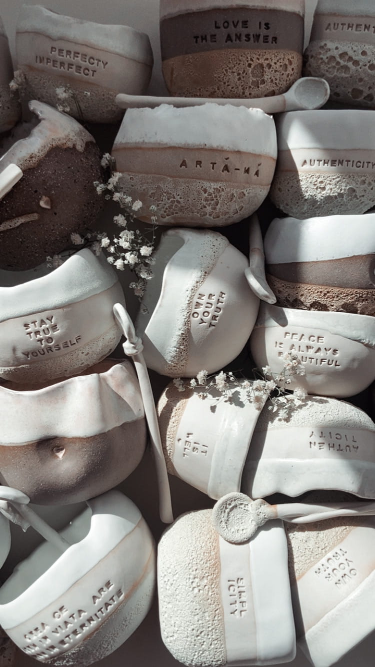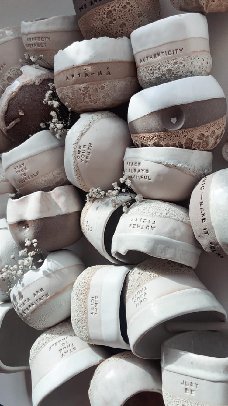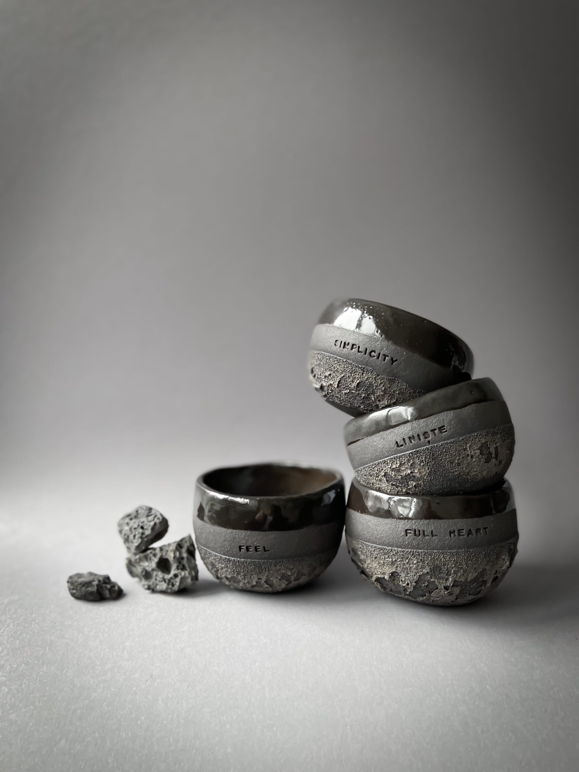 Două colecții în opoziție dar care se completează reciproc. Un duo de alb/negru care amintește că fiecare parte a vieții albă sau neagră face parte din viață. Iar viața e un întreg și le conține pe ambele. Au ca inspirație roca vulcanică, un mineral vechi, născut din foc, la fel ca aceste căni care au trecut și ele testul focului devenind puternice.